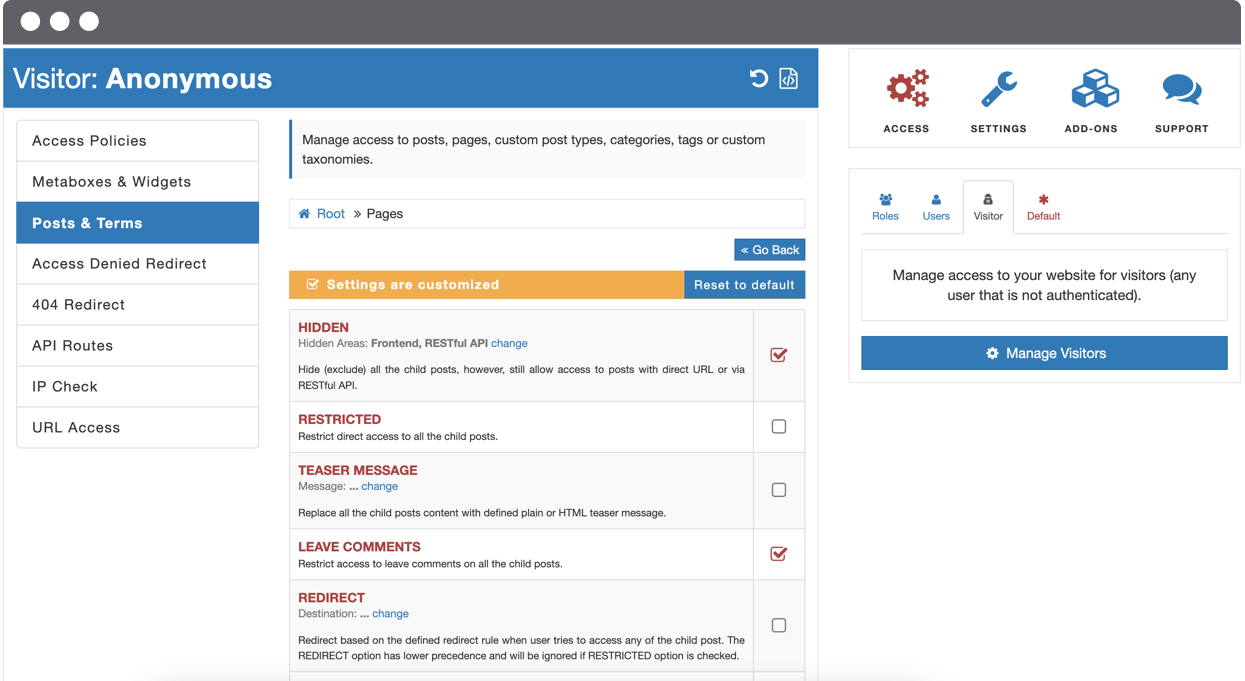 One of AAM’s key features is its flexibility in configuring permissions. Whether you want to restrict access to specific posts for certain users, limit editing capabilities to specific areas of the admin dashboard, or control access to entire sections of your website, AAM makes it simple.